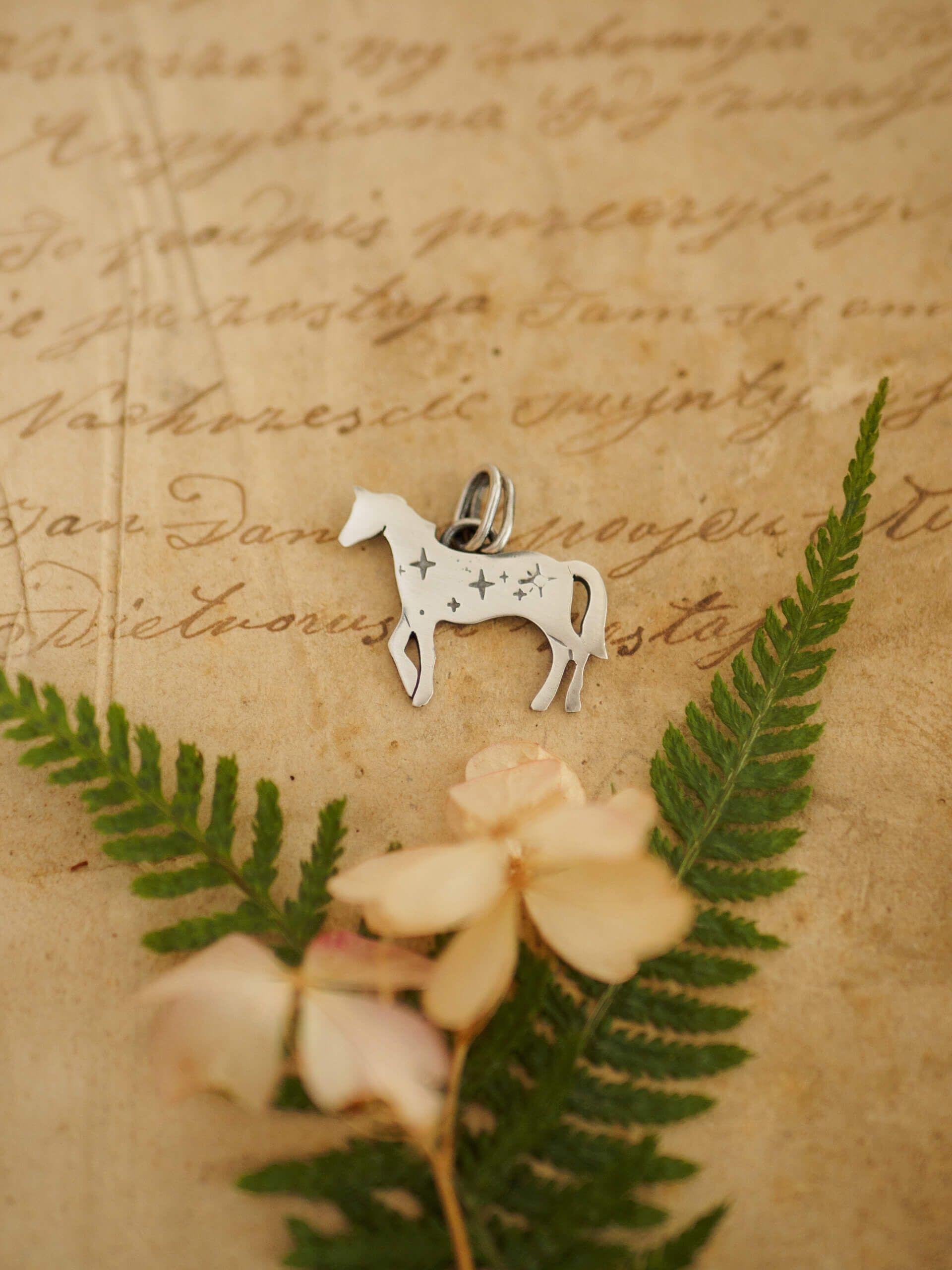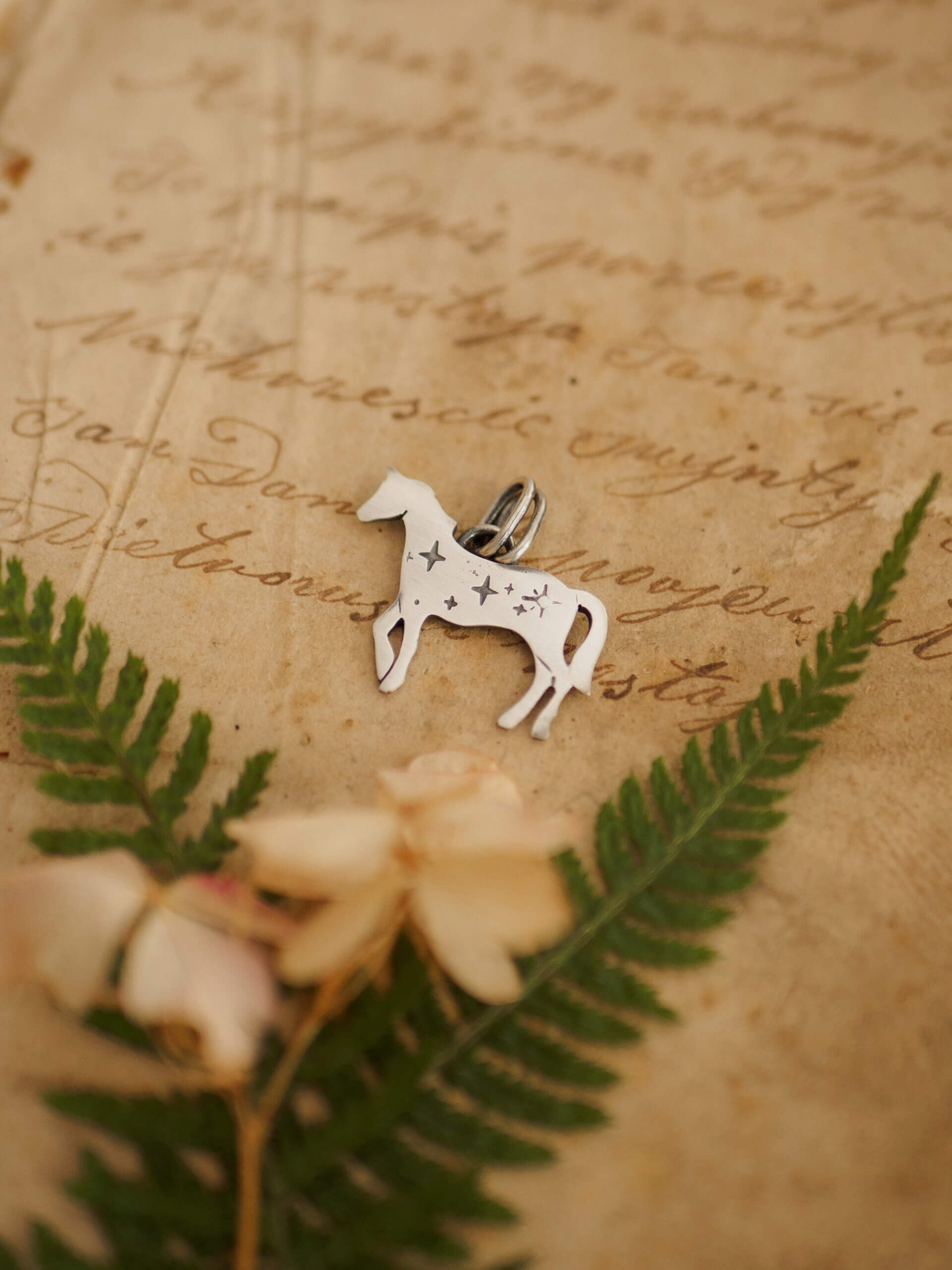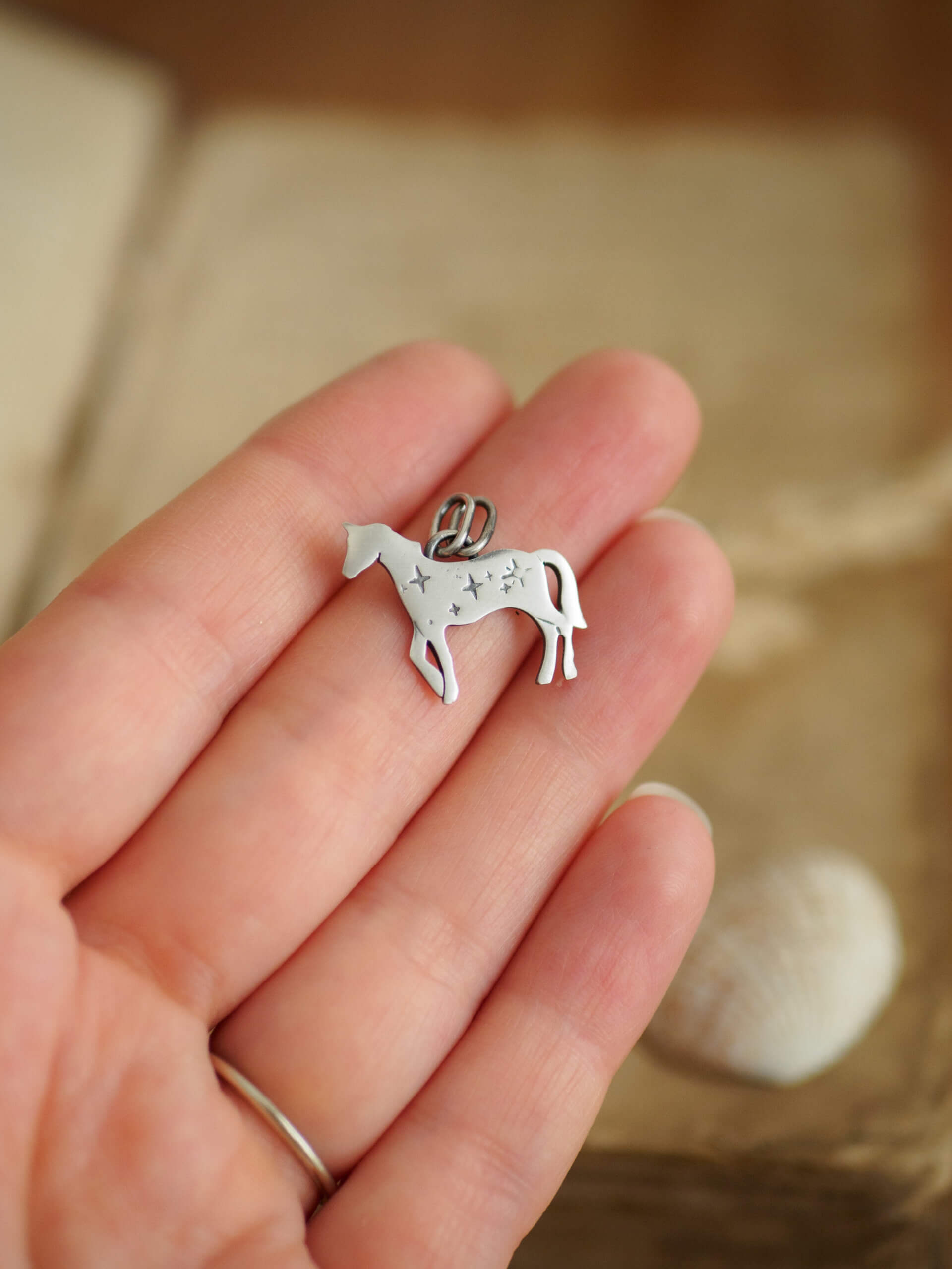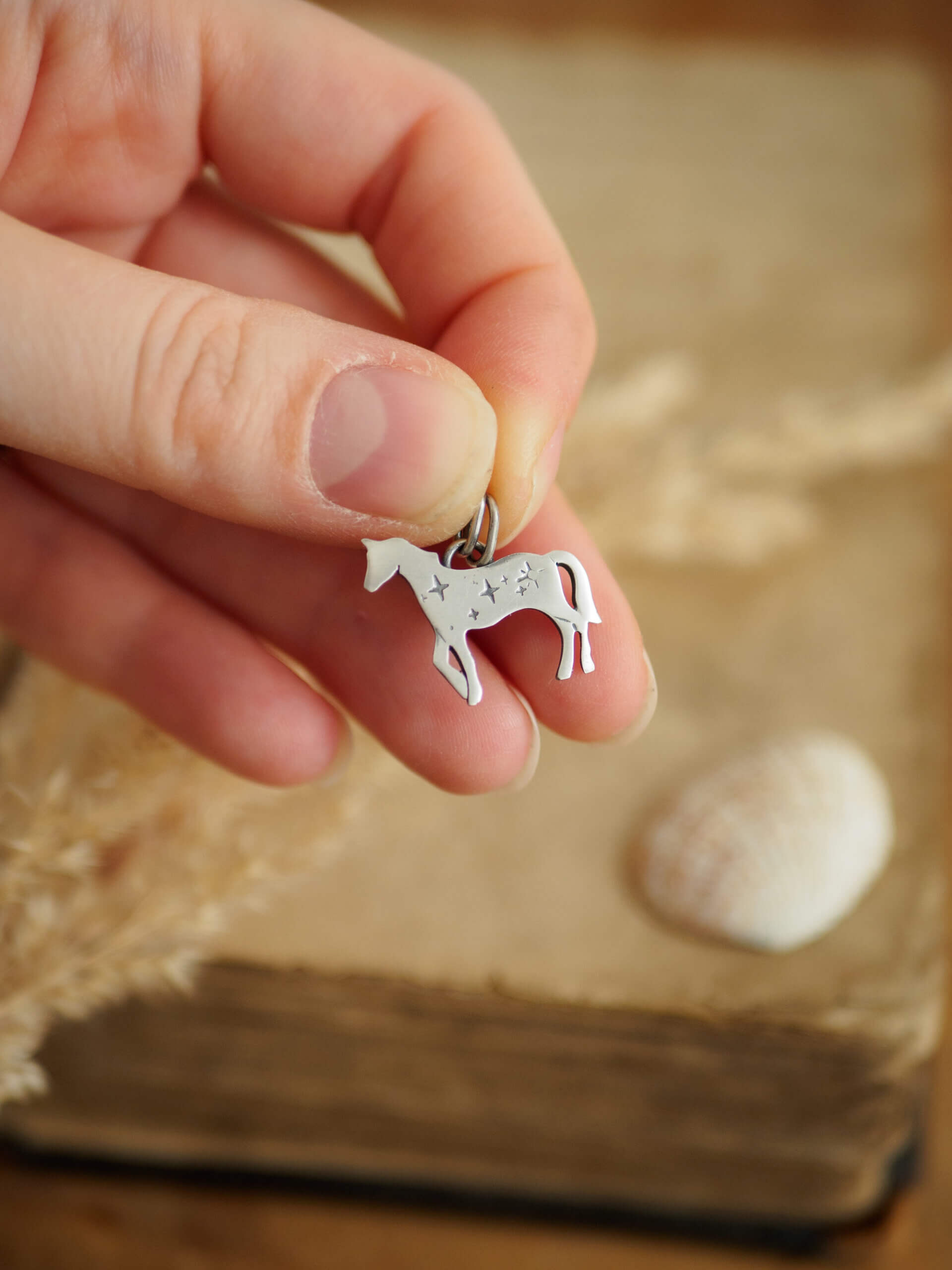 Wisiorek ma formę niewielkiego konia, ozdobionego wzorem gwiazdek.