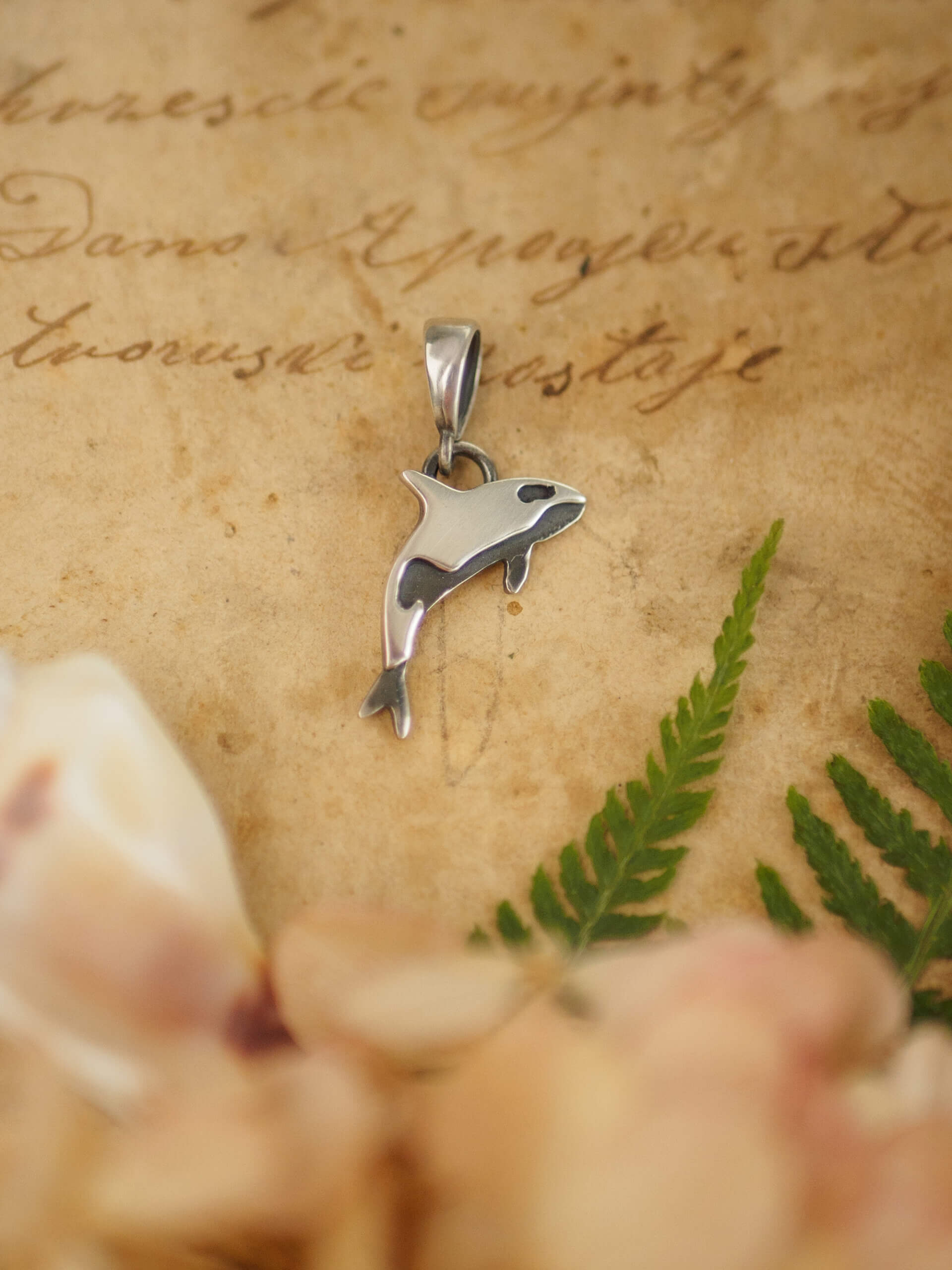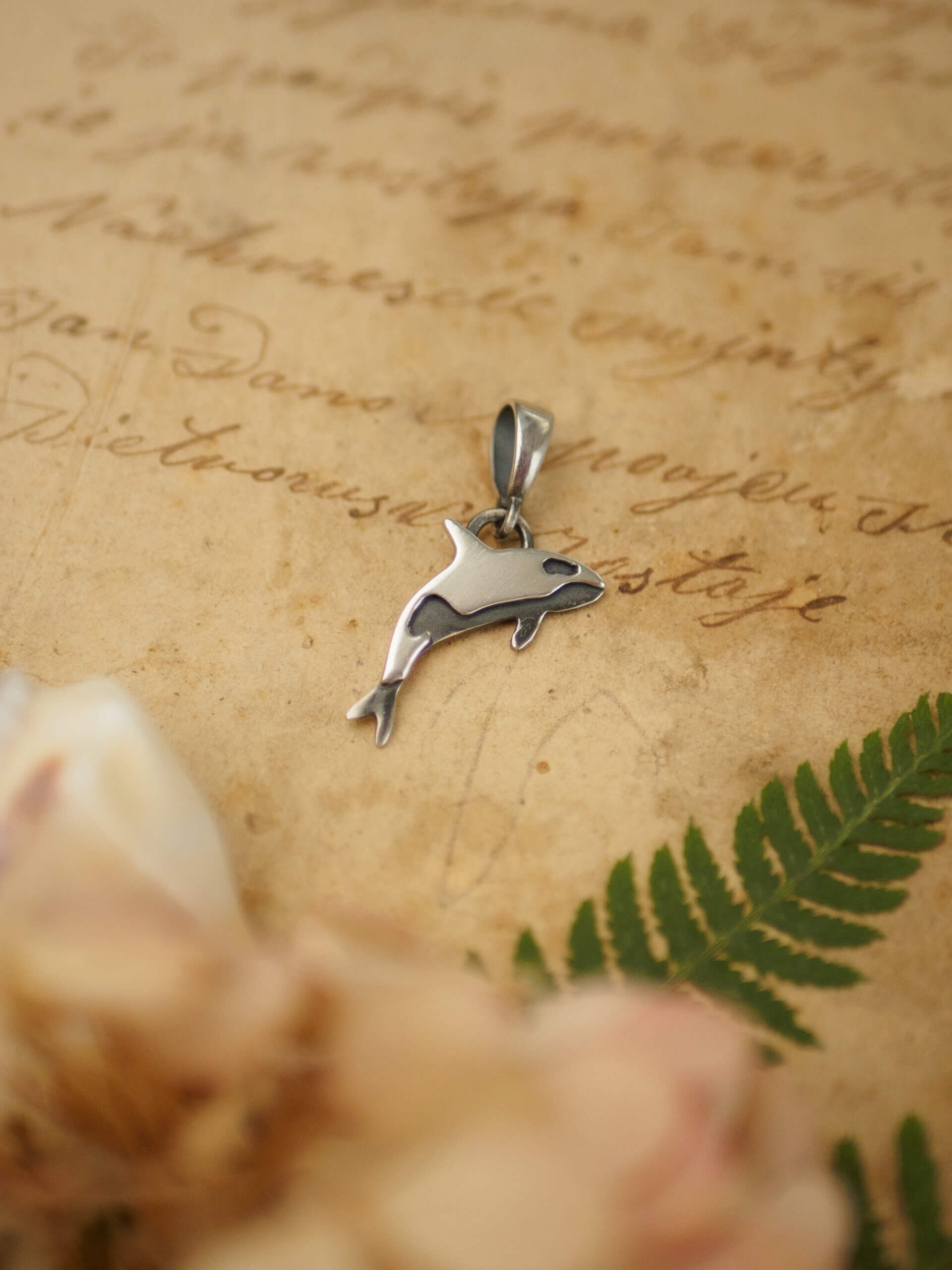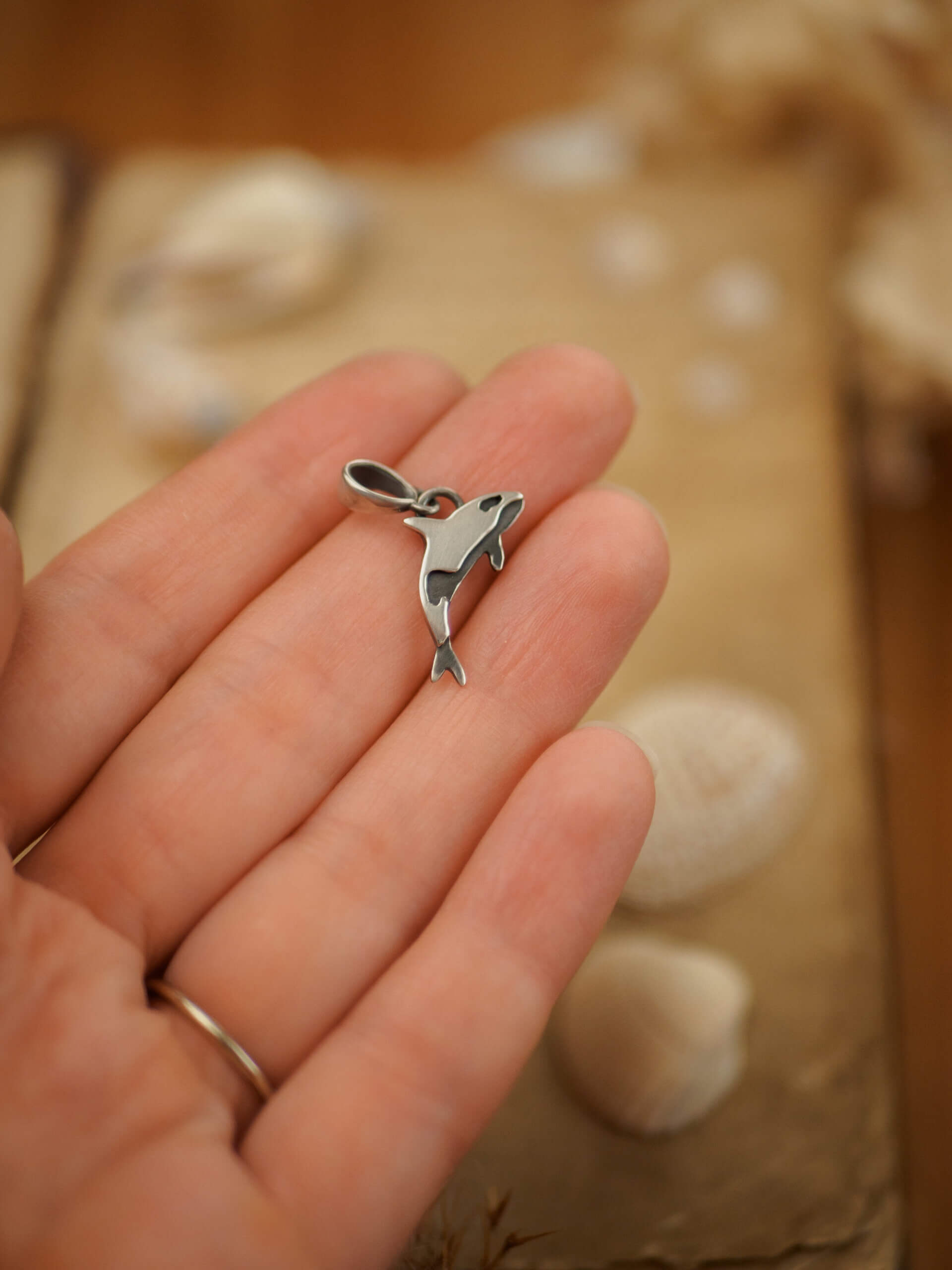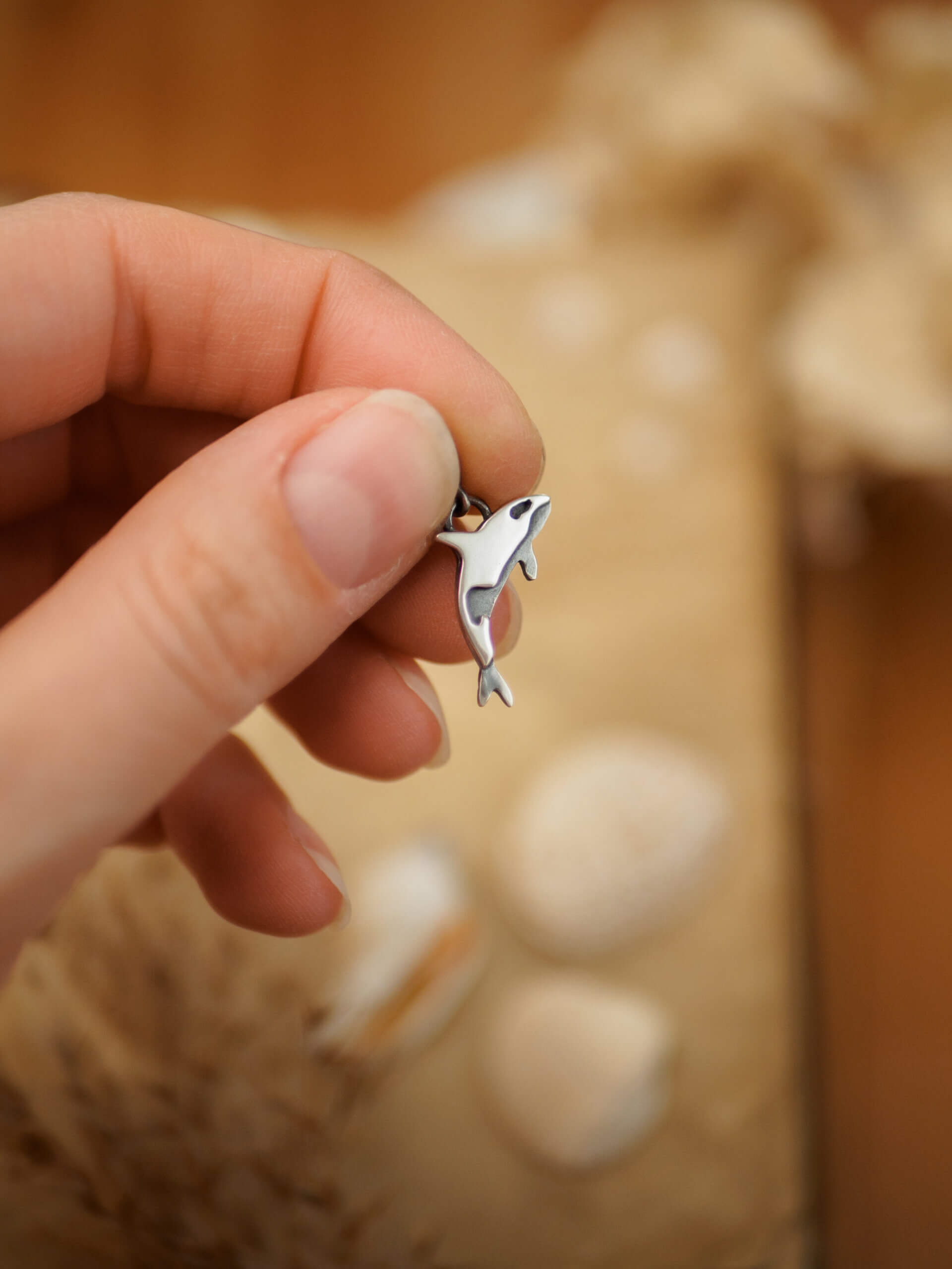 Orka mini to delikatny srebrny wisiorek z serii minimalistycznych zwierzątek.